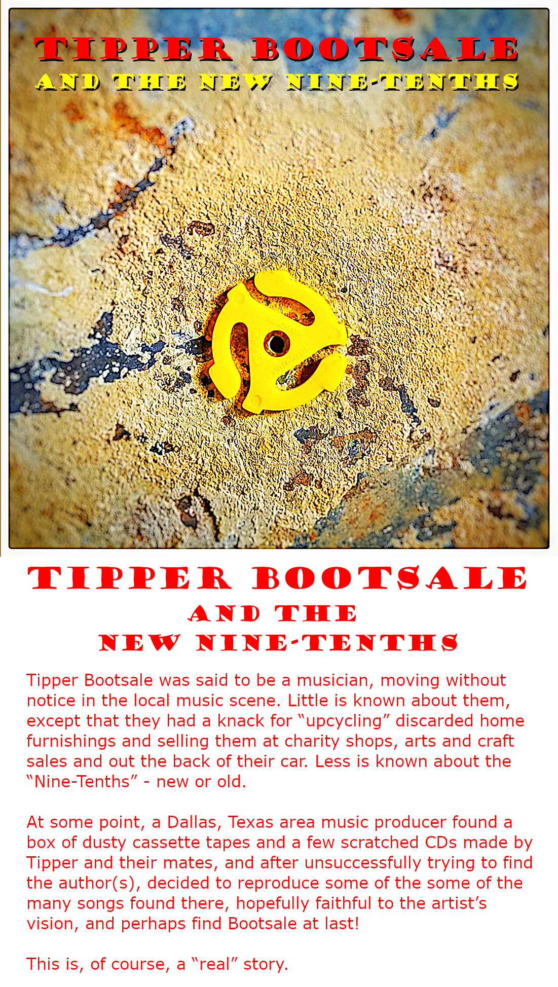 "Tipper Bootsale and The New Nine-Tenths" was produced by ned nefarius, in the nukkenpfutz studio, in the Land of Gar.